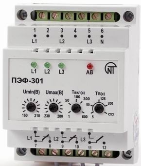 Универсальный автоматический электронный переключатель фаз ПЭФ-301 предназначен для питания промышленной и бытовой однофазной нагрузки 220 В/50 Гц от трехфазной четырехпроводной сети 3×380+N с целью обеспечения бесперебойного питания особо ответственных однофазных потребителей и защиты их от недопустимых колебаний напряжения в сети.