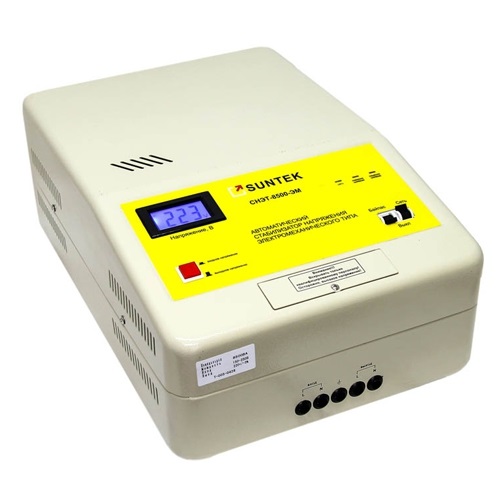 Электромеханический стабилизатор напряжения SUNTEK ЭМ 8500 ВА применим при подключении через стабилизатор напряжения, как бытовой техники, так и промышленного оборудования мощностью до 8,5 кВА. Широко используется в частных домах, коттеджах, в промышленности, в медицинской сфере.