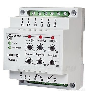 Реле напряжения РНПП-301 предназначено для защиты трехфазных потребителей от основных видов аварии в электрической сети, таких как: