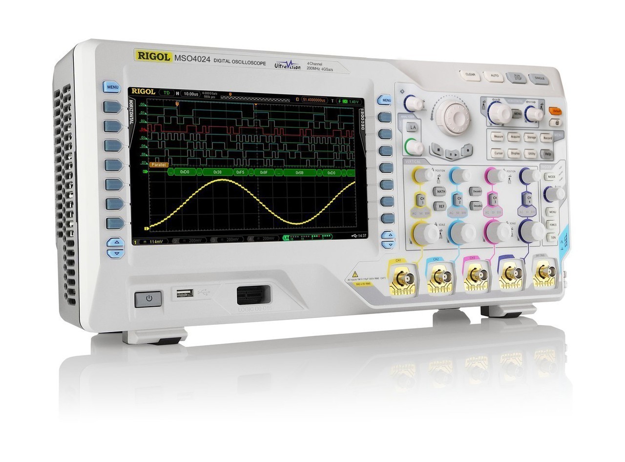 Не успели появиться «продвинутые» осциллографы Rigol серии DS4000, как в дополнении к ним пришли модернизированные осциллографы серии MSO4000, имеющим в своем составе логический анализатор на 16 цифровых каналов.