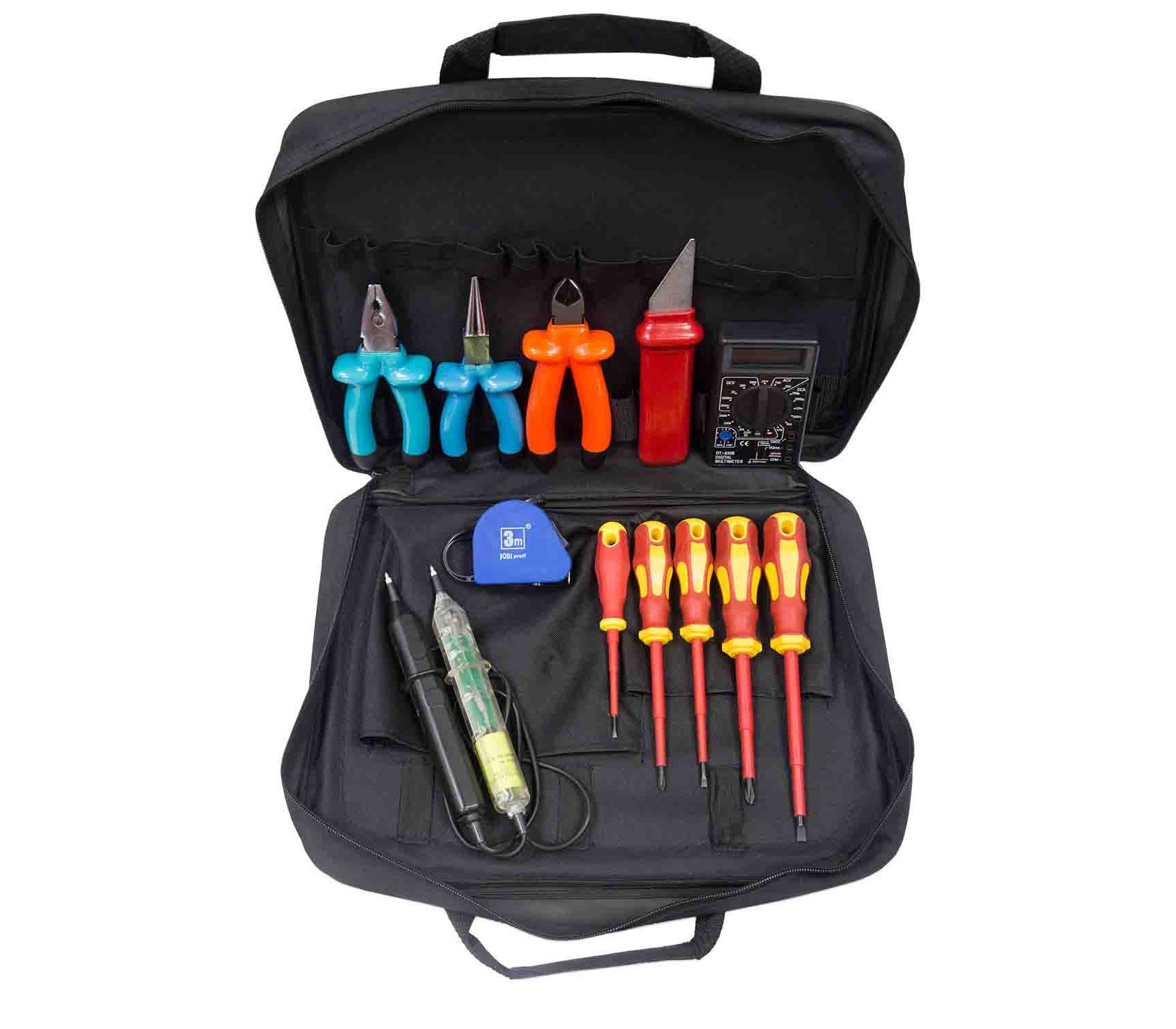 Набор инструментов сформирован для проведения электромонтажных и ремонтных работ линейных сооружений в жилых и промышленных помещениях.