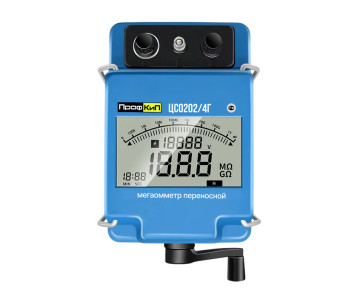 Мегаомметры переносные ПрофКиП ЦС0202/4Г предназначены для измерения электрического сопротивления постоянного тока при проверке параметров изоляции. Мегаомметры применяются для оперативного контроля сопротивления и параметров изоляции, при настройке, испытаниях и обслуживании промышленного оборудования и электросетей, оснащения мастерских, предприятий и организаций, обслуживающих электросети. Особенностью мегаомметров ПрофКиП ЦС0202/4Г является отсутствие необходимости использовать стороннее питание в виде гальванических элементов, батарей аккумуляторов и т д, так как питание электронной схемы и элементов ЖК дисплея осуществляется от генератора с механическим приводом. Приборы выпускаются в качестве современной замены мегаомметров серий М4100, ЭСО202, ЦС0202 украинского производства |