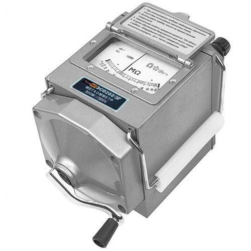 Мегаомметр ПрофКиП ЭСО202/3Г (измеритель сопротивления изоляции ПрофКиП ЭСО202/3Г) создан для измерения сопротивления изоляции электрических цепей, не находящихся под напряжением. Мегаомметр ПрофКиП ЭСО202/3Г применяются для измерения сопротивления изоляции электрической проводов, кабелей, разъёмов, трансформаторов, обмоток электрических машин и других устройств, а также для измерения поверхностных и объемных сопротивлений изоляционных материалов. Питание мегаомметра ПрофКиП ЭСО202/3Г осуществляется от встроенного электромеханического генератора.