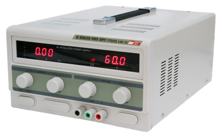 - Габариты источника питания UnionTEST UT6005E: 365x265x165 (мм), вес 12.6 кг