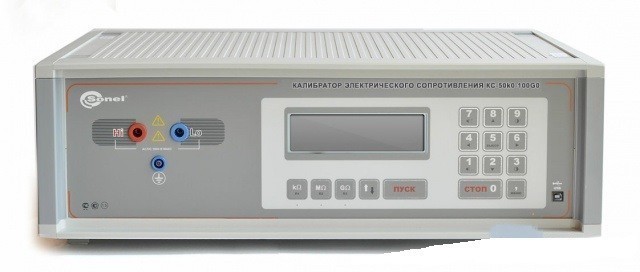 Калибратор КС-50k0-100G0 предназначен для воспроизведения и задания меры электрического сопротивления. Применяется как эталонное средство для поверки измерителей сопротивления изоляции, с измерительным напряжением до 2,5 кВ. Характеристики калибратора позволяют его также использовать для поверки большинства измерителей электрического сопротивления. В серии калибраторов КС эта модель имеет самые лучшие метрологические характеристики.