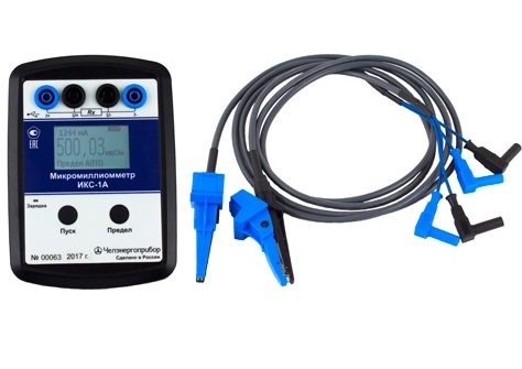 В комплектации «Базовый» микромиллиомметр ИКС-1А поставляется с измерительными проводами длиной 1,5 м с зажимами типа "крокодил" с раскрытием до 20 мм.