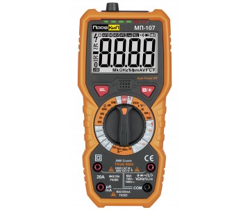 Мультиметры переносные ПрофКиП МП-107 предназначены для измерения напряжения постоянного и переменного тока, силы постоянного и переменного тока, сопротивления постоянному току, электрической ёмкости и частоты. Приборы оснащены жидкокристаллическими дисплеями для индикации результатов измерений. Мультиметры отличает компактность, незначительная масса и возможность автономного питания в различных условиях эксплуатации. Мультиметры предназначены для использования в цеховых и лабораторных условиях, при наладке и ремонте радиотехнического оборудования, электронных схем и узлов автоматики, а также при тестировании и ремонте промышленных электросетей. Портативные многофункциональные цифровые мультиметры с функцией измерения среднеквадратического значения, оснащенные большим ЖК-дисплеем с задней подсветкой для удобства считывания показания, и фонарем. Имеют функцию защиты от перегрузки и индикацию разряженной батареи. Измеряют температуру с помощью термопары типа К в диапазоне от -20°C до +1000°C. Идеальные профессиональные многофункциональные измерительные приборы для производства, образования и домашнего хозяйства |