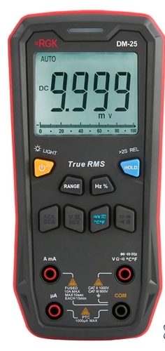 Мультиметр RGK DM-25 - современный прибор для замеров электрических параметров, включая силу и напряжение постоянного и переменного тока. Широкий функционал помогает решать самые разные задачи как в быту, так и в профессиональной деятельности.
