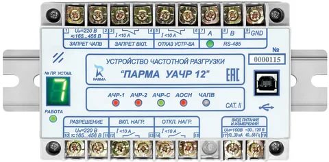 Устройство частотной разгрузки ПАРМА УАЧР 12 предназначено для ликвидации дефицита активной мощности в сети путём автоматического отключения потребителей при снижении частоты с последующим автоматическим повторным включением отключённых ранее потребителей при восстановлении частоты, а также для ликвидации дефицита реактивной мощности в сети путём отключения потребителей при снижении напряжения, с последующим автоматическим повторным включением отключённых ранее потребителей при восстановлении напряжения.