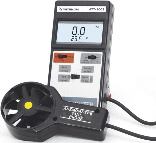 ортативный крыльчатый анемометр с возможностью измерения температуры. В приборе использован выносной датчик (крыльчатка), снабженный подвеской на шарикоподшипниках с малым трением и обеспечивающий быстрое и точное дистанционное измерение скорости воздушного потока, его температуры и мгновенную индикацию на ЖК-дисплее. Прибор отображает измеренные значения во всех принятых единицах измерения (м/с, км/ч, футы/мин, узлы). Последнее измеренное значение может сохраняться в памяти автоматически.